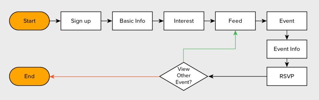 Celine and I created a user flow for Seth’s path through our app. Our developers used this to understand the flow of the app, as well as to what APIs they needed to pull from in order for our app to be functional.