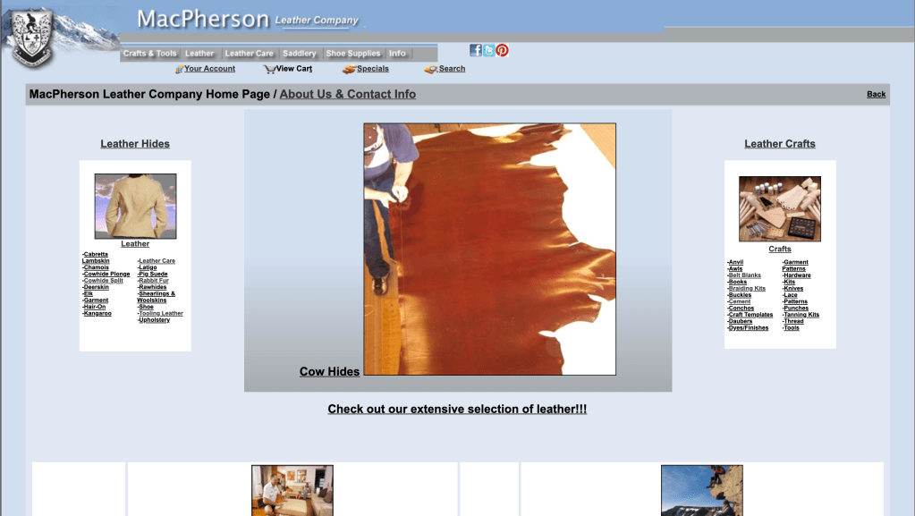 MacPherson Leather Company was established in the early 1900s and continues to run as a multi-generational family business. The business prides themselves for excellent service and expertise, and are locally recognized for their quality of goods.