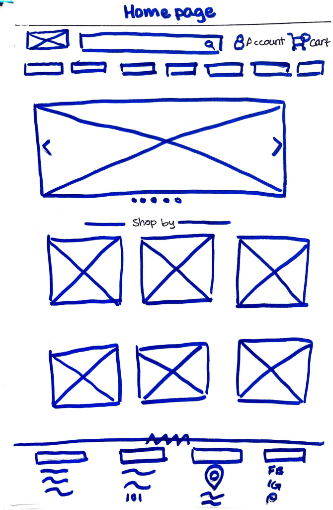 The next step in my process was to start sketching out ideas of how the pages of the website might look like. These sketches were based on my research on both competitive and comparative websites as well as incorporating Lauren’s needs and goals.